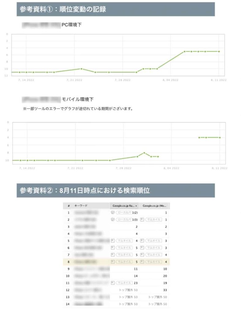 当社では、BtoB、BtoCなど業態に限らずコンサルティングを提供し、データが社内に蓄積しています。また、キーワードごとの検索順位や競合他社の検索順位を毎日レポーティング。運用する中での成功事例やノウハウを基に、SEOを最短距離で成功させます。